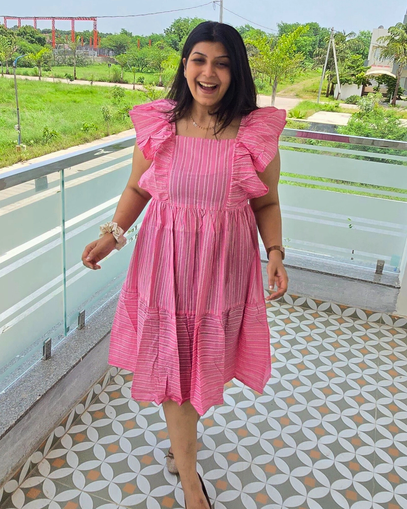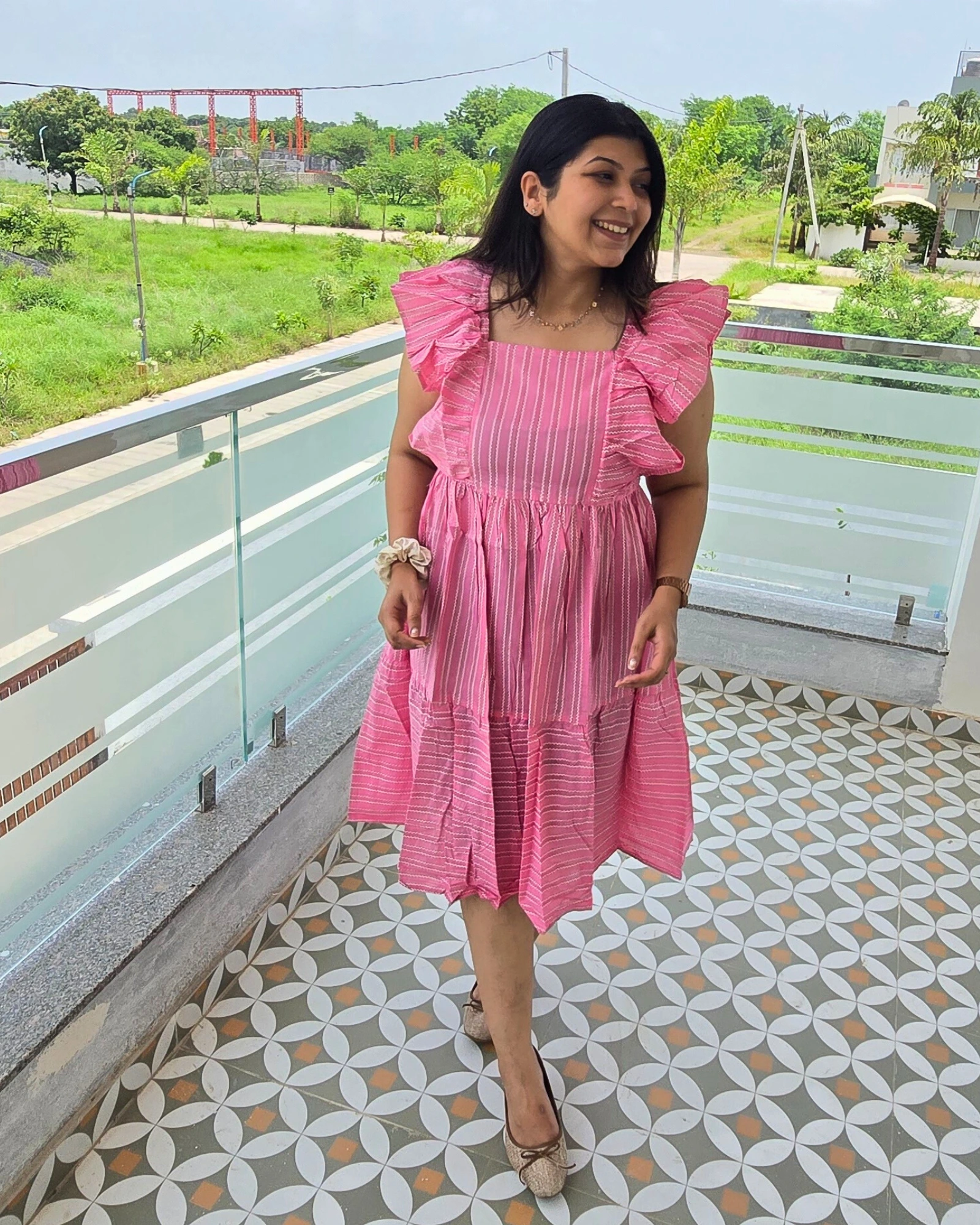 Step into a rosé day with this cheerful striped dress in a pretty pink hue. Designed for movement and made with breathable cotton, it’s your go-to outfit for sunny afternoons or casual brunches. The signature ruffle detail and stripe-blocked tiers lend a charming edge to this breezy staple.